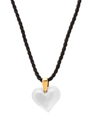 consisting of a glass heart pendant and cord necklace.
