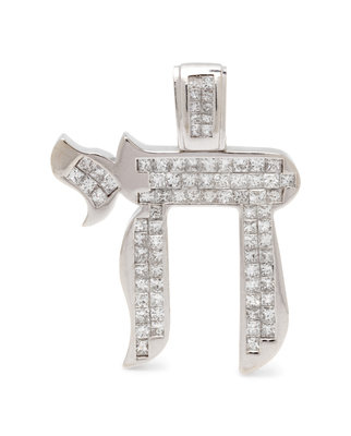 A 14 Karat White Gold and Diamond Chai Pendant,