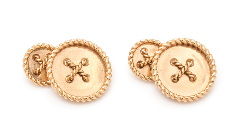 A Pair of 14 Karat Yellow Gold Button Motif Cufflinks,