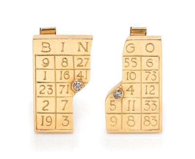 A Pair of 14 Karat Yellow Gold and Diamond Bingo Cufflinks,