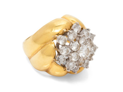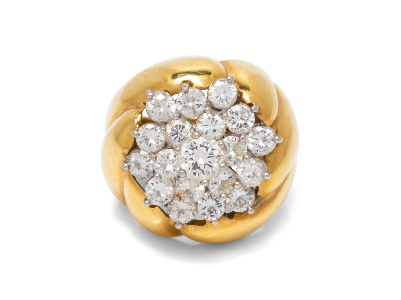 containing one round brilliant cut diamond weighing approximately 0.50 carat and 12 round brilliant cut diamonds weighing approximately 2.40 carats total.