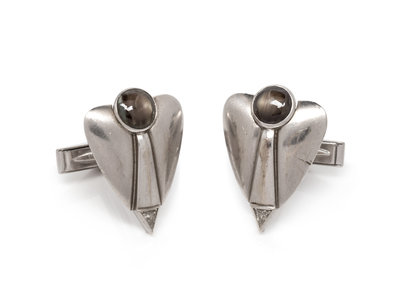 A Pair of White Gold, Black Star Sapphire and Diamond Cufflinks,