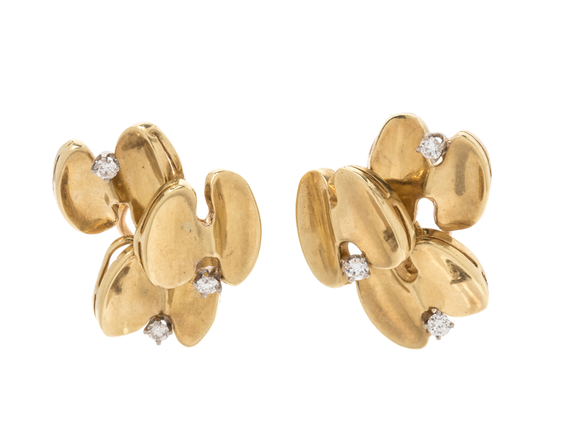 containing six round brilliant cut diamonds weighing approximately 0.40 carat total in a triple leaf design.