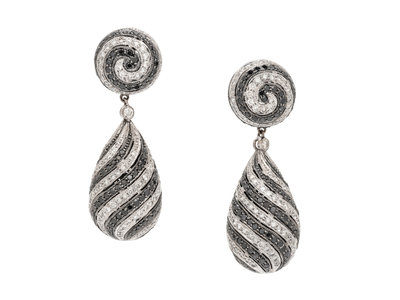 A Pair of White Gold, Diamond and Black Diamond Earrings,