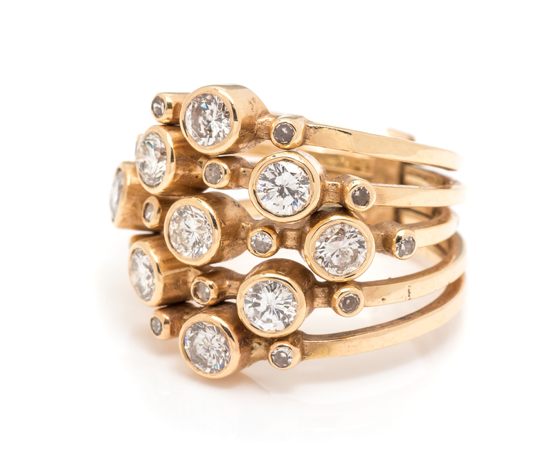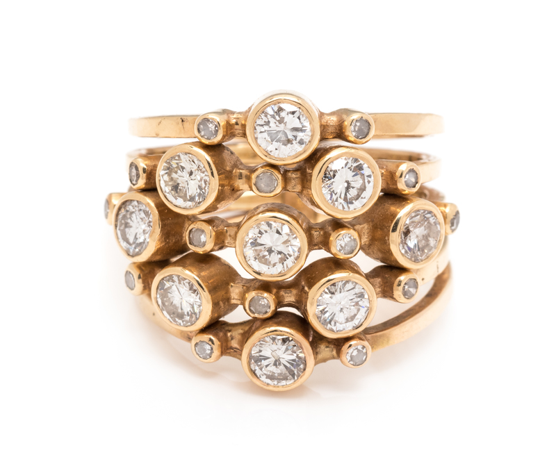 A Yellow Gold and Diamond Five Row Ring,
