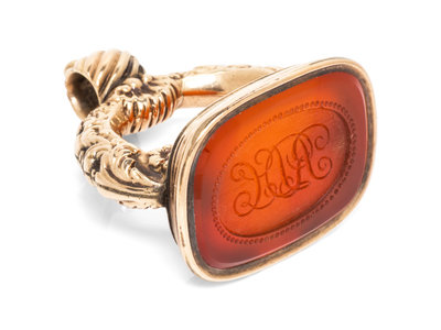 A Yellow Gold and Carnelian Fob,
