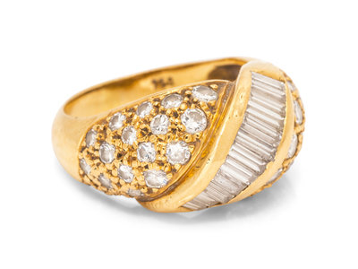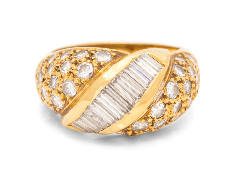 containing 36 round brilliant cut diamonds weighing approximately 1.00 carat total with 12 baguette cut diamonds weighing approximately 0.75 carat total.