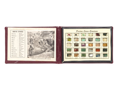 consisting of a bifold case containing 30 precious stone specimens with an informational booklet.
