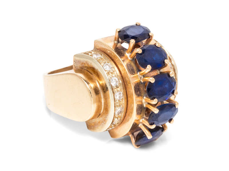 A Yellow Gold, Sapphire and Diamond Ring, Italian,