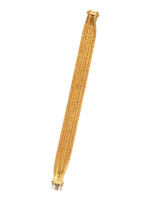 consisting of six strands of textured gold links.