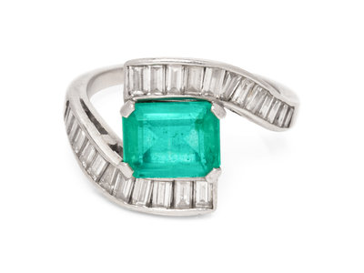 A Platinum, Emerald and Diamond Ring,