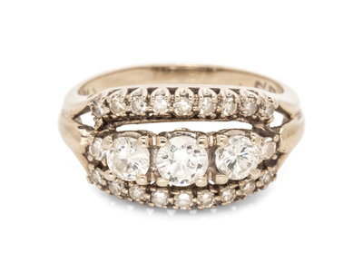 A 14 Karat White Gold and Diamond Ring,