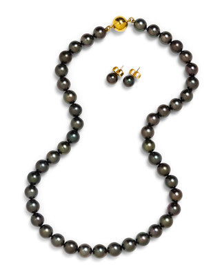 A 14 Karat Yellow Gold and Cultured Tahitian Pearl Demi-Parure,