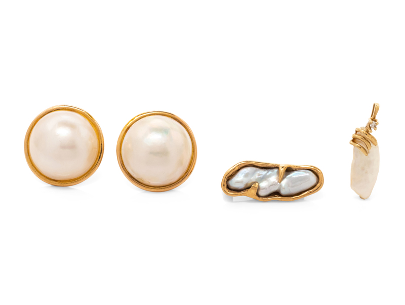 A Collection of Yellow Gold and Cultured Pearl Jewelry,