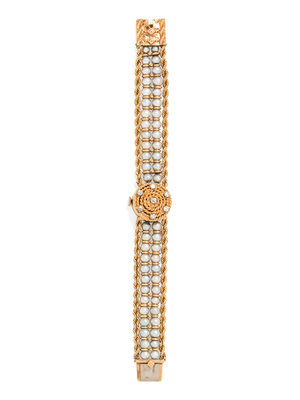 A 14 Karat Yellow Gold, Diamond and Cultured Pearl Surprise Wristwatch, Honora,