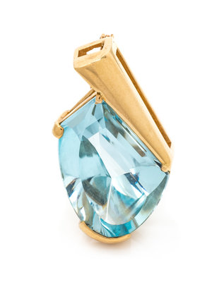 A 14 Karat Yellow Gold and Blue Topaz Pendant,