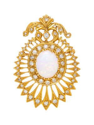 A Yellow Gold, Opal and Diamond Pendant/Brooch,