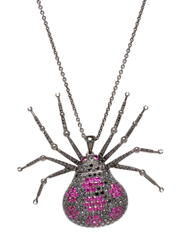A Blackened Gold, Ruby and Black Diamond Spider Pendant/Necklace,