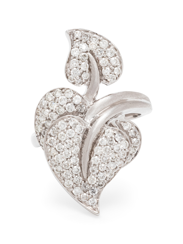 A 14 Karat White Gold and Diamond Leaf Motif Ring,