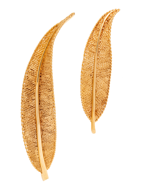 A Pair of 14 Karat Yellow Gold Leaf Motif Brooches,