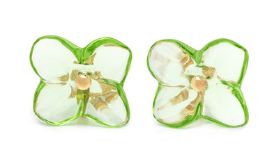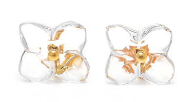 A Pair of 18 Karat Gold and Crystal Flower Convertible Earclips, Baccarat,