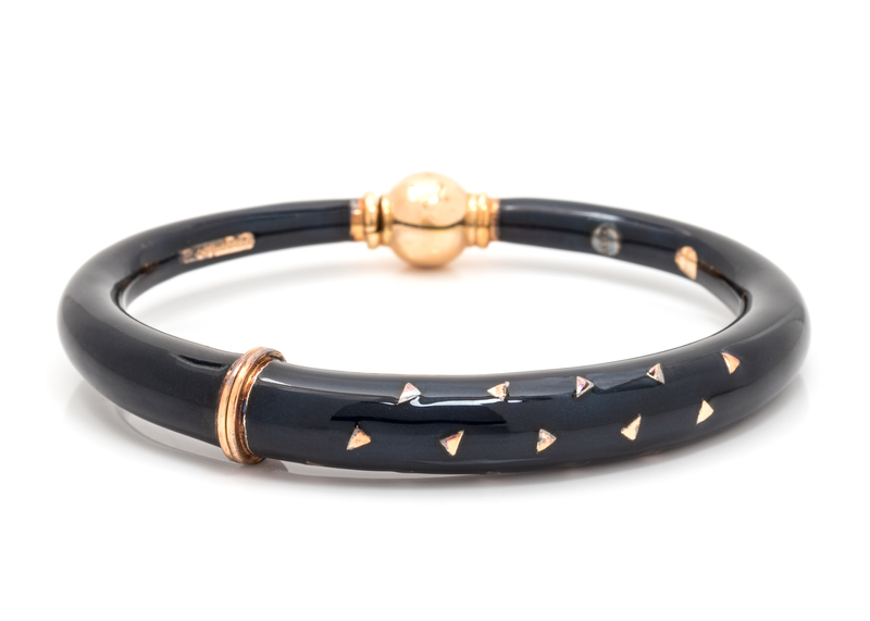 consisting of a domed bangle with dark blue enamel, hinged with back clasp.