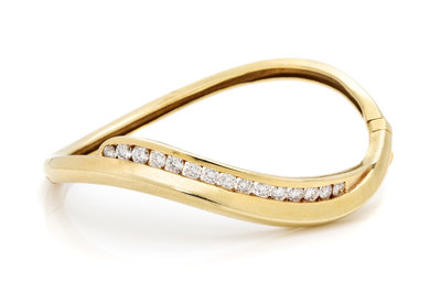 An 18 Karat Yellow Gold and Diamond Bangle Bracelet,