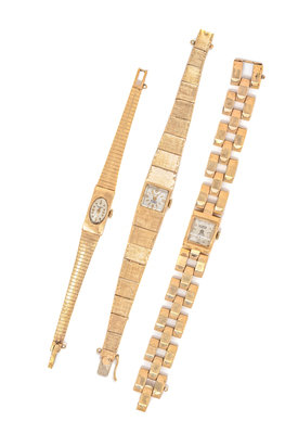 A Collection of 14 Karat Yellow Gold Wristwatches,