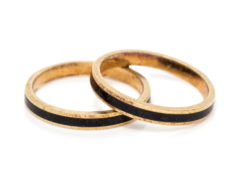 A Pair of 14 Karat Yellow Gold and Enamel Rings,