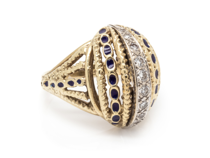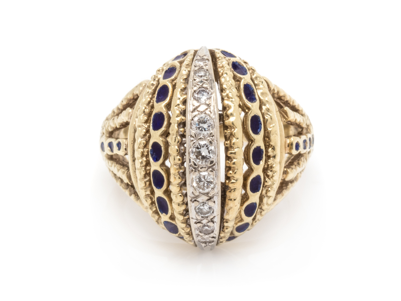 A 14 Karat Bicolor Yellow Gold, Diamond and Enamel Ring,