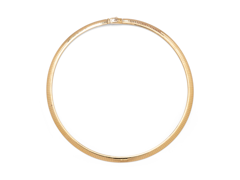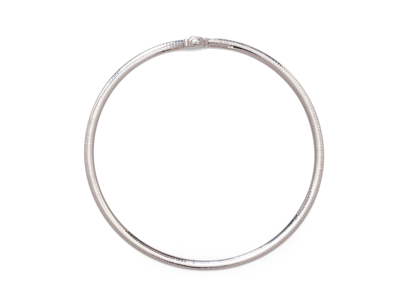 consisting of an omega chain necklace with one side in white gold and the other in yellow gold, measuring approximately 6.10 mm wide.