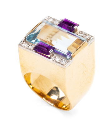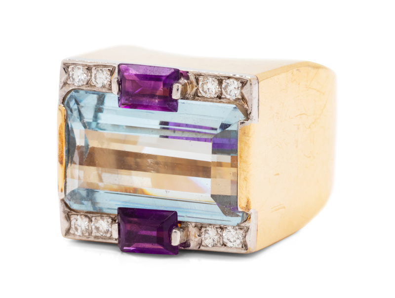 A 14 Karat Bicolor Gold, Multigem and Diamond Ring, M&J Savitt,