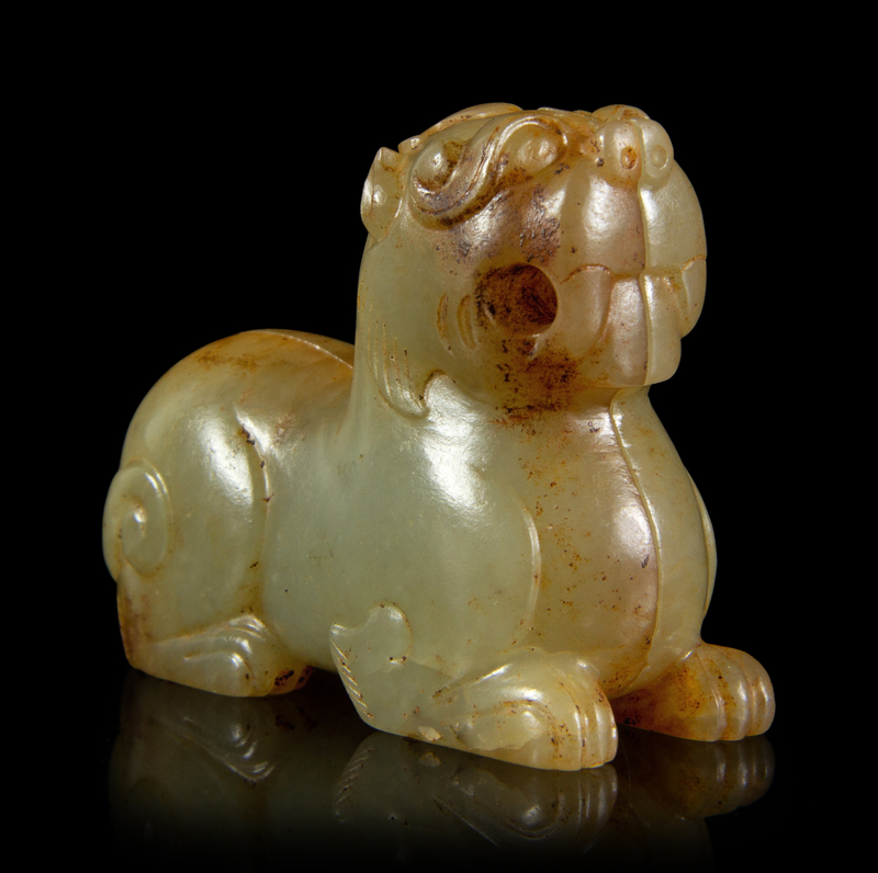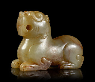 A Celadon and Russet Jade Mythical Beast