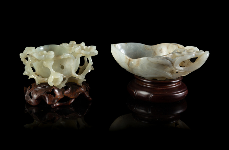 Two Pale Celadon Jade Handled Cups