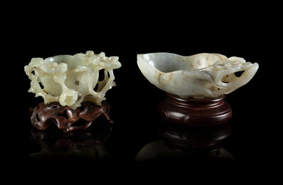 明十七世紀 青玉雕梅花耳杯兩件