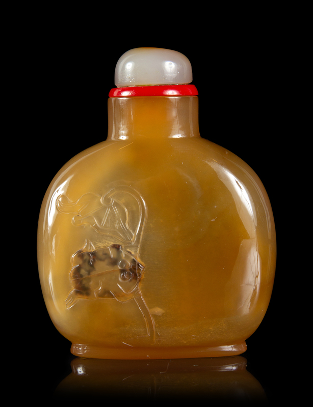 A Caved Silhouette Agate Snuff Bottle