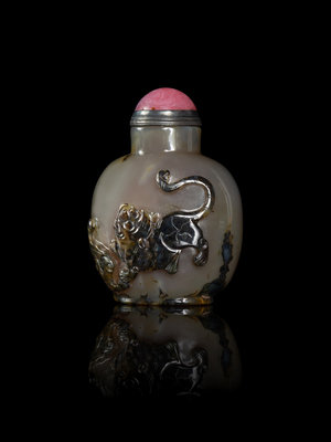 清晚期 灰瑪瑙巧雕貓蝶圖鼻煙壺