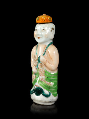 A Famille Rose Porcelain Figural-Form Snuff Bottle
