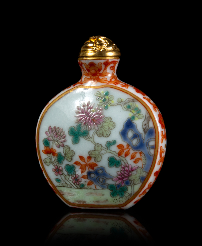 清乾隆 御製粉彩開光花卉圖鼻煙壺