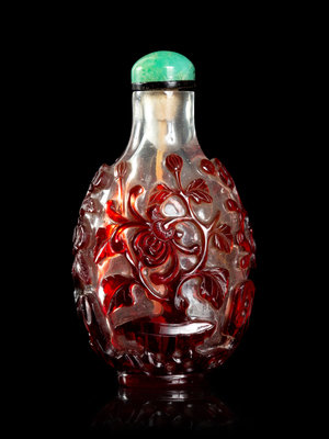 1780-1850年 透明地套紅料菊花紋鼻煙壺