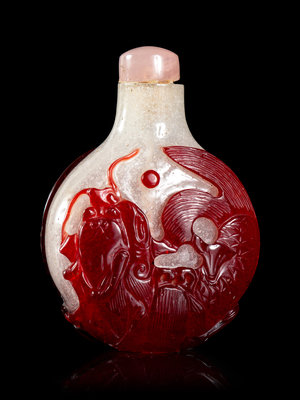 清十九世紀 雪霏地套紅料鯉魚化龍圖鼻煙壺