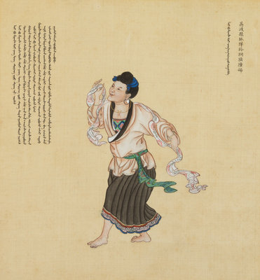 題跋:荔波縣夷人有𤝎𦍕狑狪猺獞,六種雜居並為一類。元時同屬南丹安撫司,明初改土歸流置荔波縣,隸屬廣西省。本朝雍正十年改隸黔省,其衣服言語嗜好相同。歲時祀槃瓠,雜魚肉酒飯。男女連袂而舞,相悅者負之而去,遂婚媾焉。