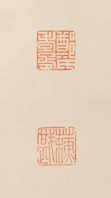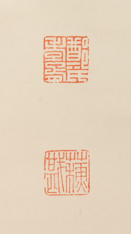 signed and inscribed, with two artist's seals, Zheng Xiaoxu yin, Su Kan.