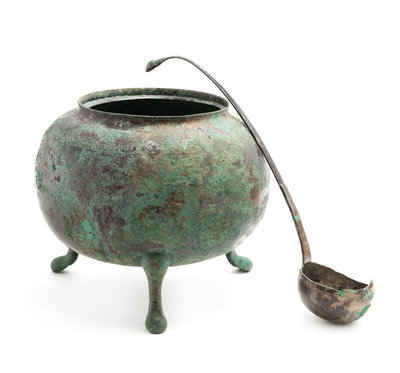 A Large and Rare Bronze Tripod Tureen and Ladle
