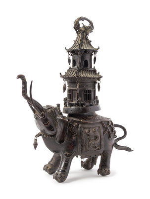 in the form of an ornately caparisoned elephant supporting a pagoda.