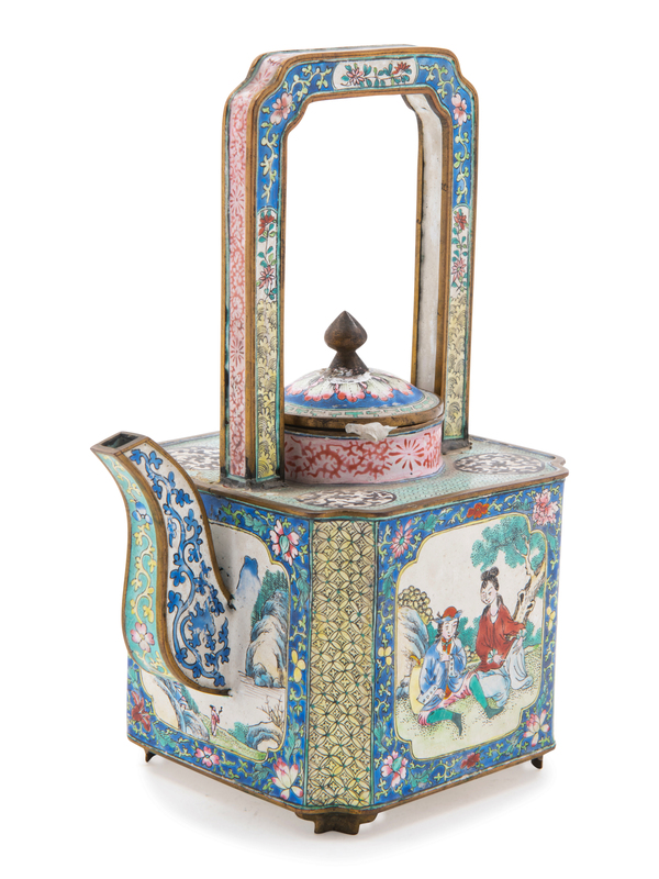 清十九世紀 廣式銅胎畫琺瑯西洋人物圖茶壺