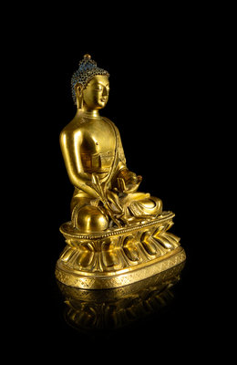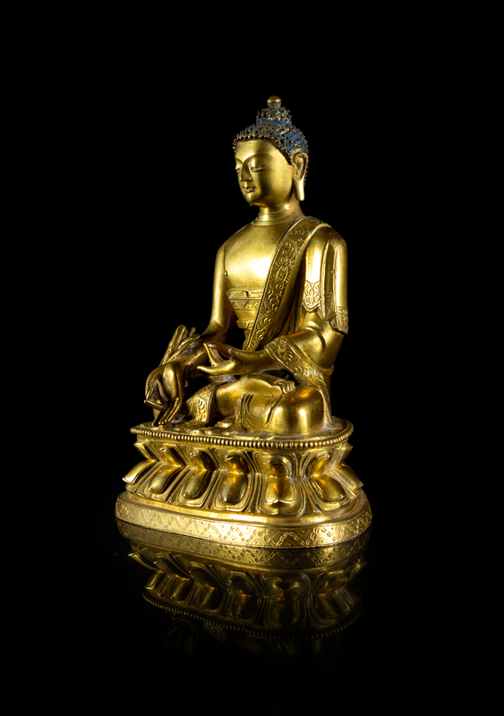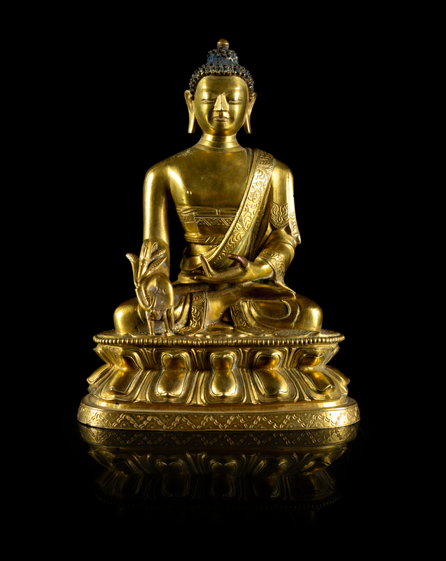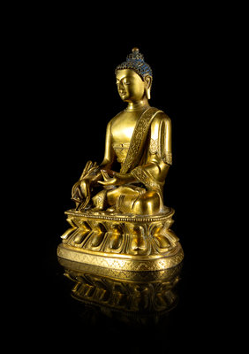 A Sino-Tibetan Gilt Bronze Figure of Sakyamuni Buddha
