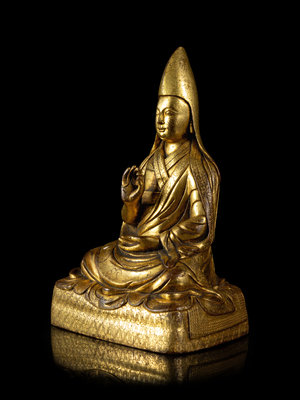 A Sino-Tibetan Gilt Bronze Figure of Gelukpa Lama