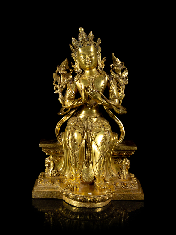 A Sino-Tibetan Gilt Bronze Figure of Maitreya Bodhisattva
