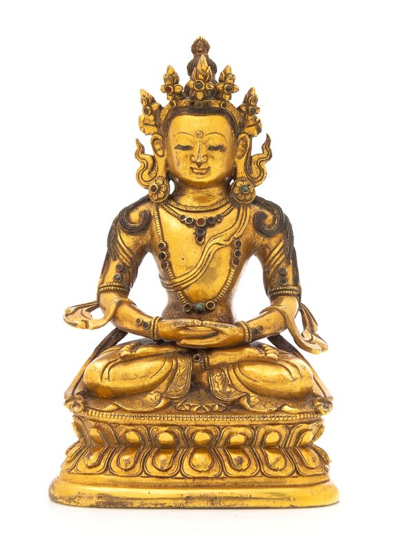 A Sino-Tibetan Gilt Bronze Figure of Amitayus